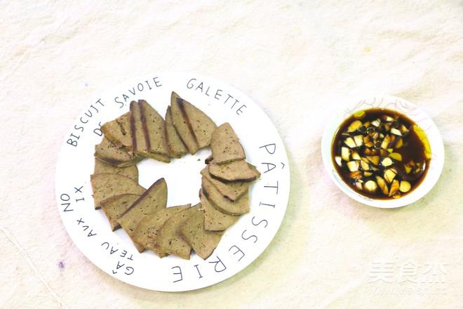 8.大人吃可調(diào)味汁(用蒜蓉,醋,生抽,香油和少許辣椒油調(diào)成料汁)。隨豬肝一起上桌蘸汁或者直接淋在豬肝上。