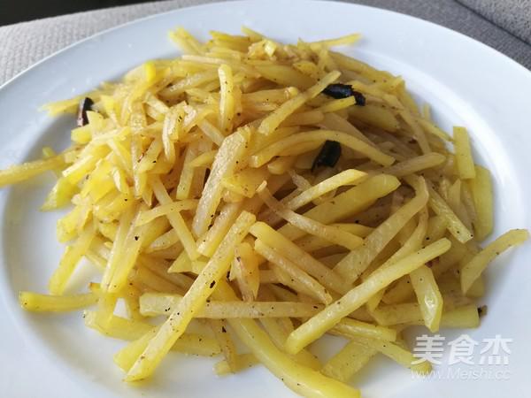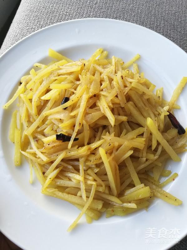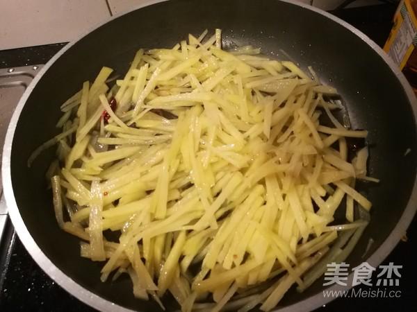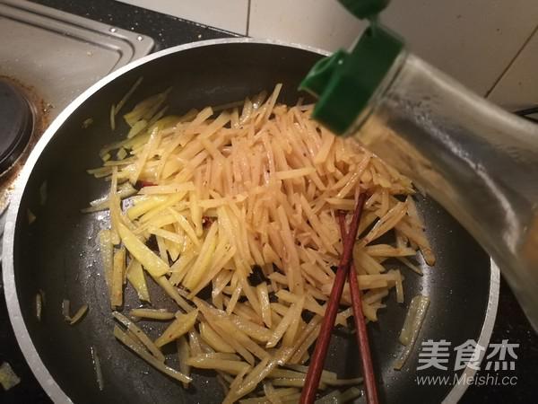 土豆絲變軟后,加入適量米醋和食鹽,攪勻出鍋!