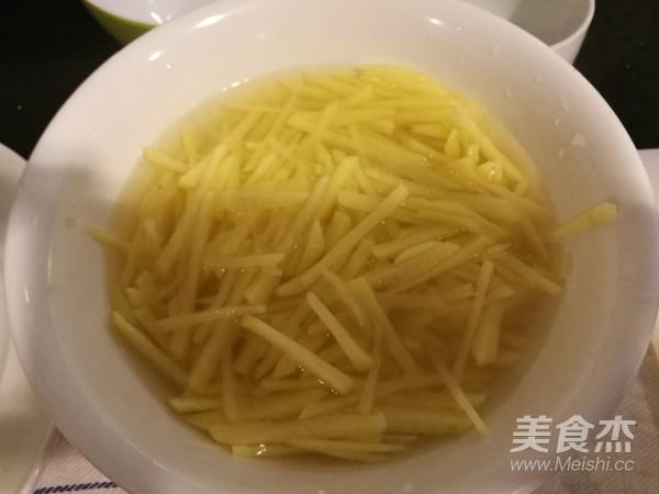 切好的土豆絲放入清水中泡一下(除去表面淀粉)
