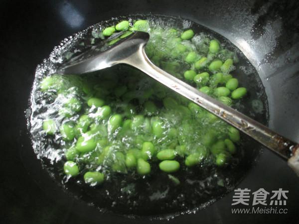 然后,合入焯熟的毛豆翻炒一下。