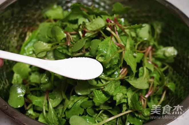 清水洗凈,加入1勺鹽,用手抓一下,腌5分鐘,殺出水分。