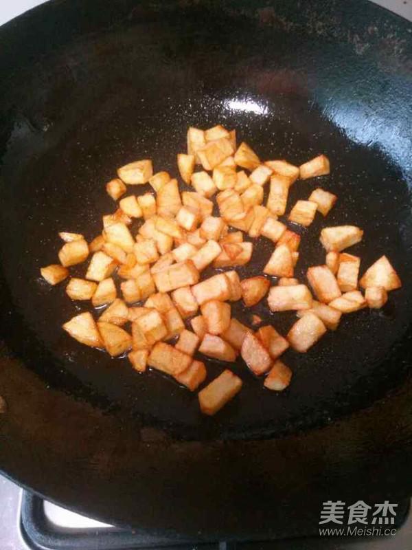 起鍋,瀝干油,不用洗鍋,又把土豆下鍋,加適量鹽,翻炒均勻即可。