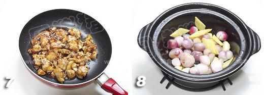 1、 此菜選雞最好選嫩的子雞,而且炒的時間不易過長,雞塊轉成白色即可。因為還要輕過砂鍋的二次加熱,不用怕不熟;