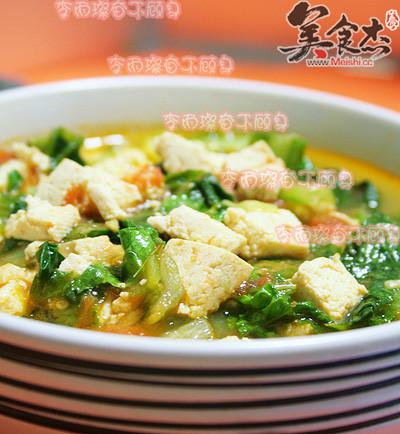 3.放入切塊的豆腐,翻炒片刻,加水煮10分鐘