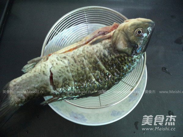 鯽魚洗凈,斜刀切3-4刀,然后放置瀝干水分
