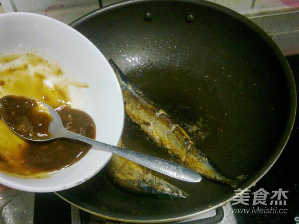 鍋里倒入油,將魚身上的調(diào)料弄凈,放入鍋中慢煎。