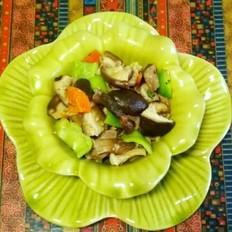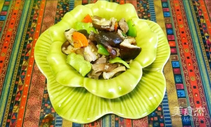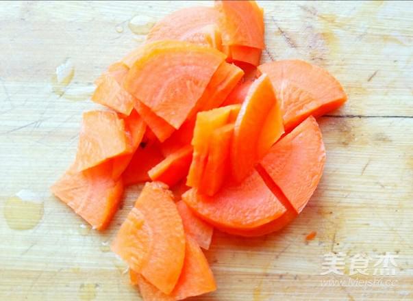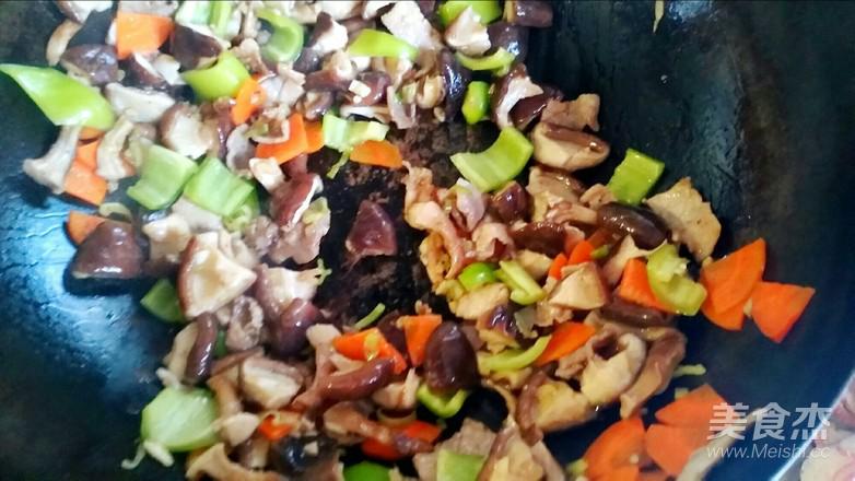 倒入香菇 ,胡蘿卜,翻炒。倒入適量鹽。