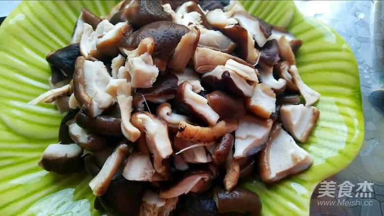 香菇去柄,掰成小塊。鍋燒開,把香菇放入水中焯熟。