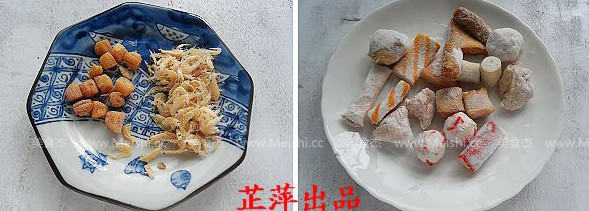 1.準備干貝和蝦米備用,隨自己喜歡準備各類丸子