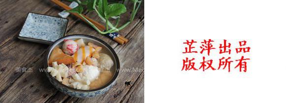 3.用勺子舀一勺湯汁,感覺煮干貝和蝦皮的湯汁鮮味出來的時候,放入準備好的丸子,將丸子煮熟后關火