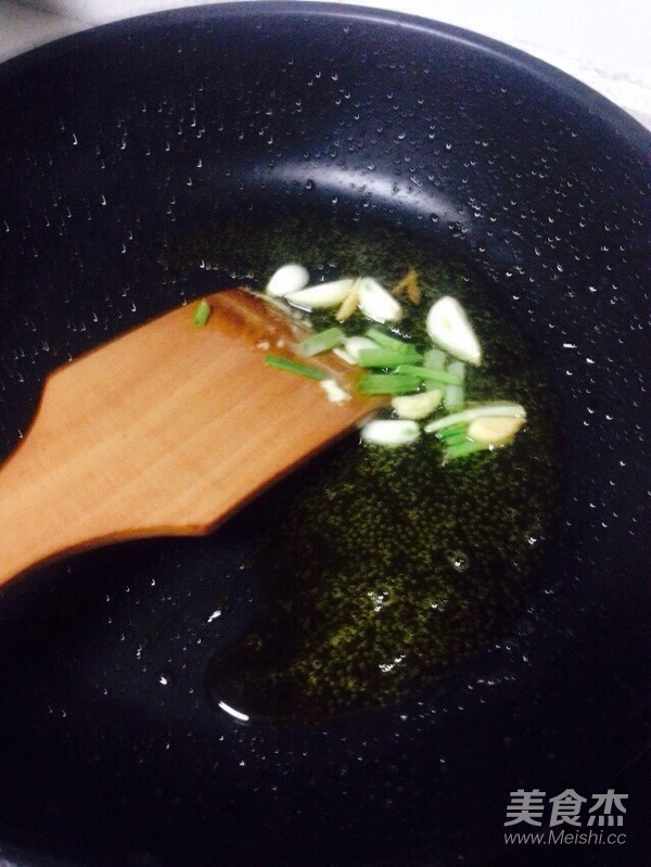 鍋里倒入適量油燒熱后,放入大蒜和蔥爆香