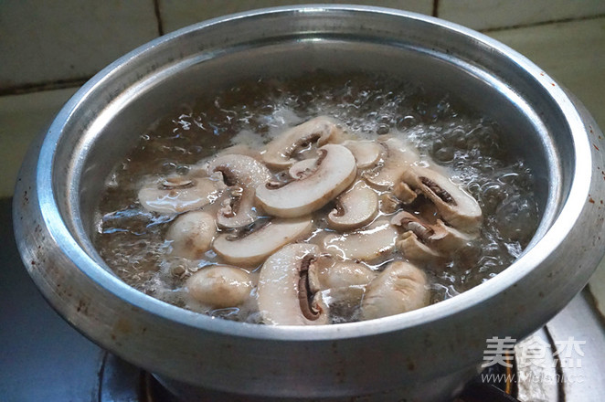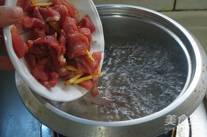 待鍋中的水煮沸后,把瘦肉倒入大火燒開給2-3分鐘