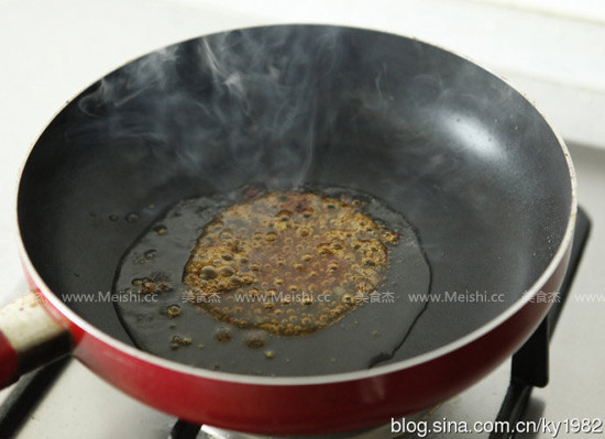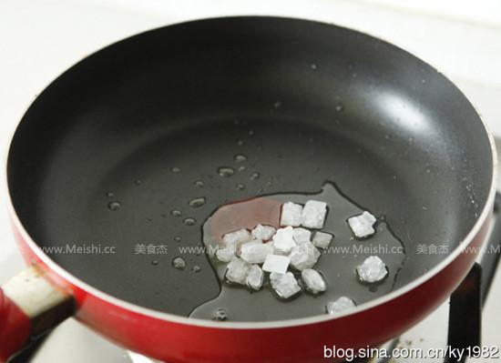 3.鍋燒熱后倒入植物油(約60毫升),調(diào)成中火,放入冰糖