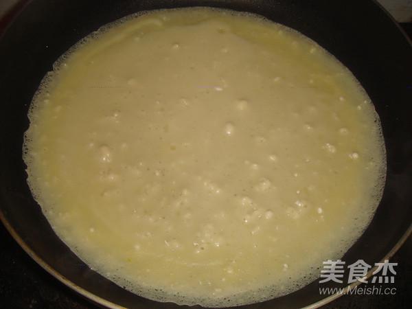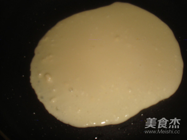 然后燒熱平底鍋,在鍋里稍稍加點油,取適量的面糊放進去