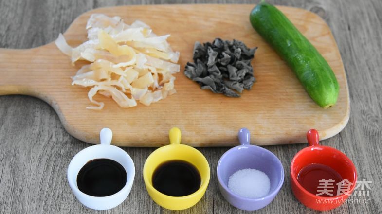 海蜇皮 150g、黑木耳 15g、黃瓜 50g
