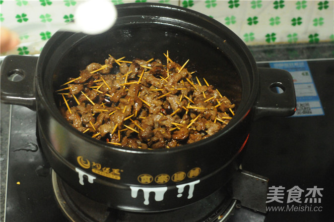 9.小半鍋即可,將牛肉串倒進(jìn)去