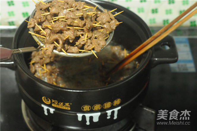 11.牛肉炸熟后撈出來,瀝干油
