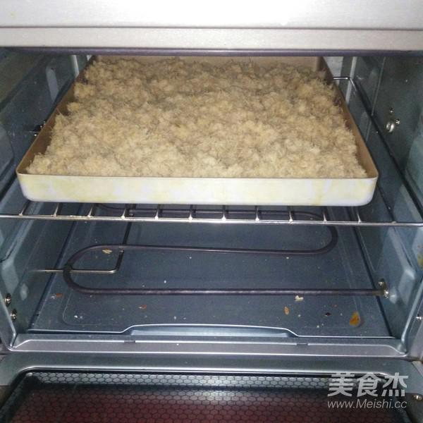 9.將肉松倒入烤盤,烤箱上下火150度烤20分鐘,每五分鐘取出烤盤翻炒一下肉松,烤到口感滿意為止,要隨時觀察不能烤過了哦。我烤的香酥口感。