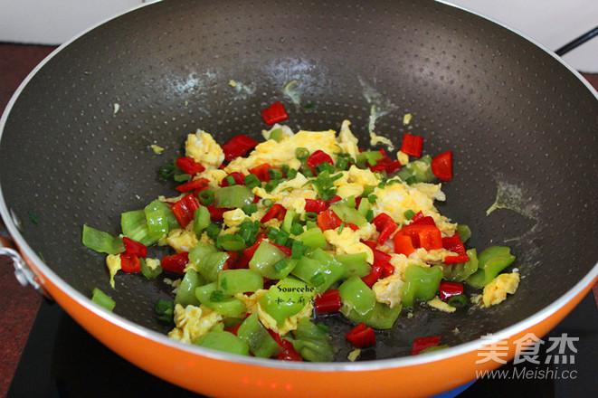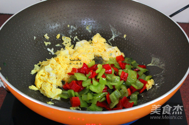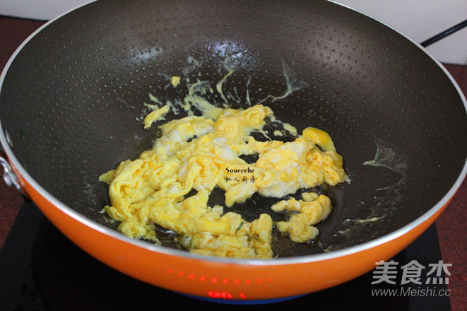 雞蛋打散,倒入鍋中翻炒,不要讓雞蛋粘塊;