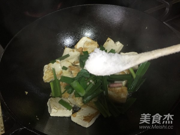 放入蒜葉,翻炒;