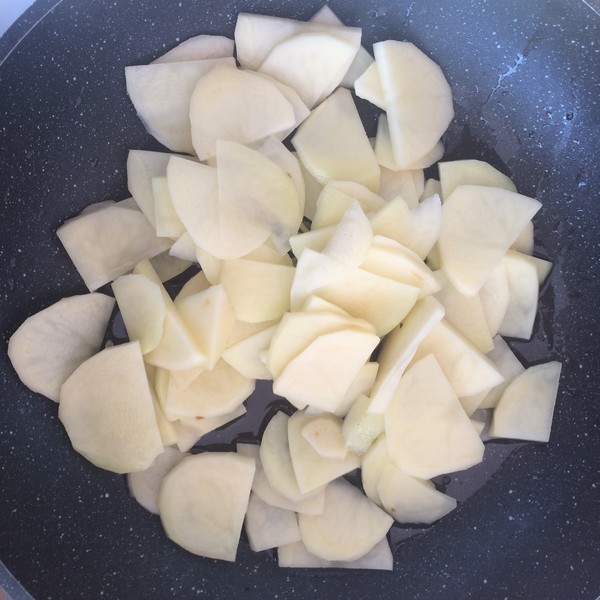放入土豆片進行翻炒。