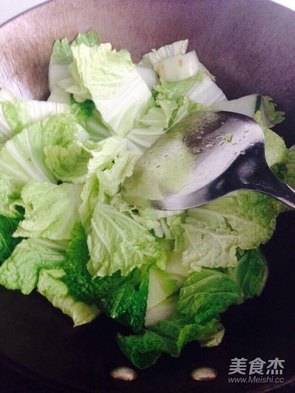 倒入蟠龍菜,翻炒片刻 加入食鹽和雞精調味