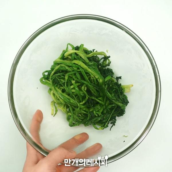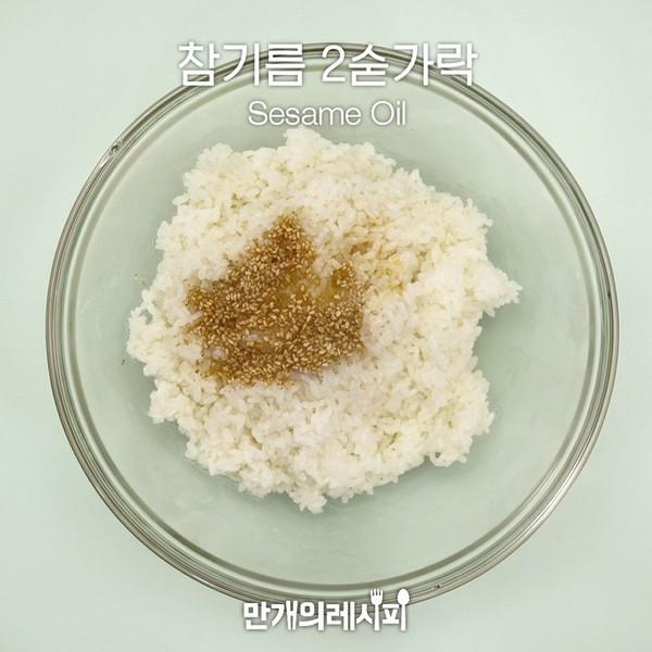 在碗里放入米飯,鹽,芝麻,香油攪拌