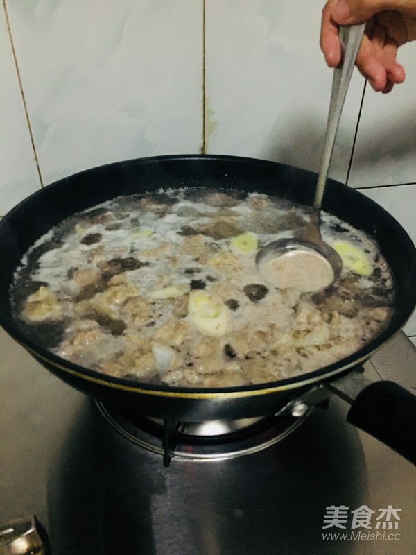 7.翻炒結束,加熱水至淹沒牛肉。加入生抽,老抽,綿白糖食用鹽,蔥姜枸杞等調料。