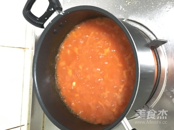 9.待牛肉煮1個小時左右。在另一個鍋中,放入少許食用油,炒制西紅柿。不加任何調味料,煮至出水。