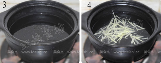 5.鍋中水燒開后,放入紅糖,用勺子攪拌均勻,大火煮2分鐘