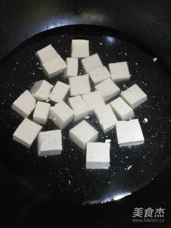 豆腐下開水煮一會,用涼水沖干凈瀝水備用。