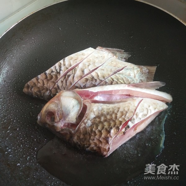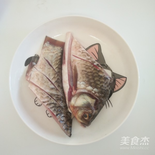 鯽魚清洗干凈切兩段,放點鹽,料酒腌制十分鐘這樣子