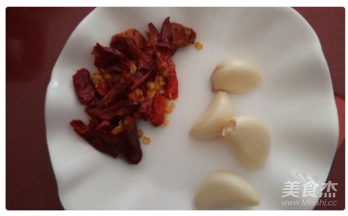 泡土豆絲時(shí)間,切好辣椒,蒜瓣拍一下切碎或者切片都可以