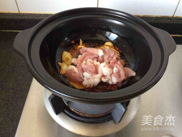 鍋內放油,熱后爆香蔥姜,郫縣豆瓣醬炒出紅油