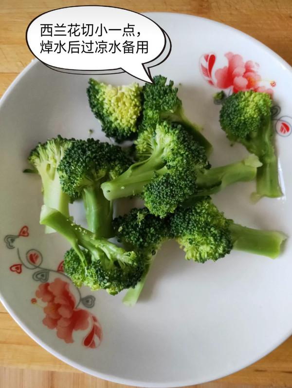 2.然后將西蘭花切小一點(diǎn),放入鍋中焯兩分鐘,撈出控干備用,如下圖所示。
