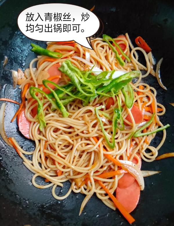 12.然后放入青椒絲,翻炒片刻就可以出鍋了。