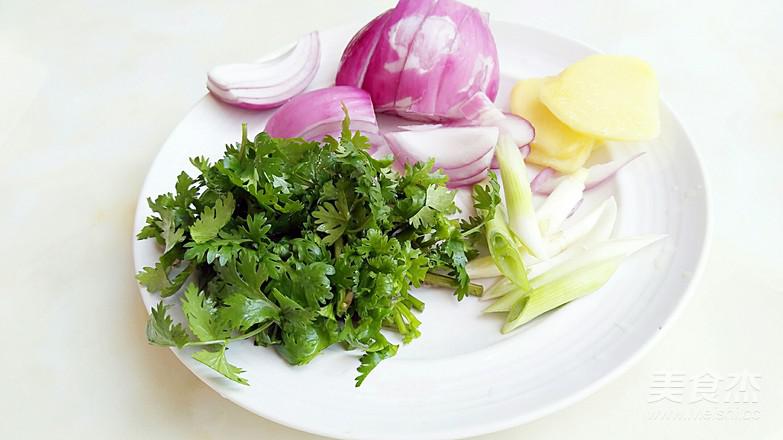 醒面的時候準(zhǔn)備配料,洋蔥切片,香菜洗凈切段,蔥切段,姜切片。