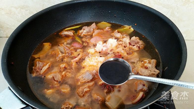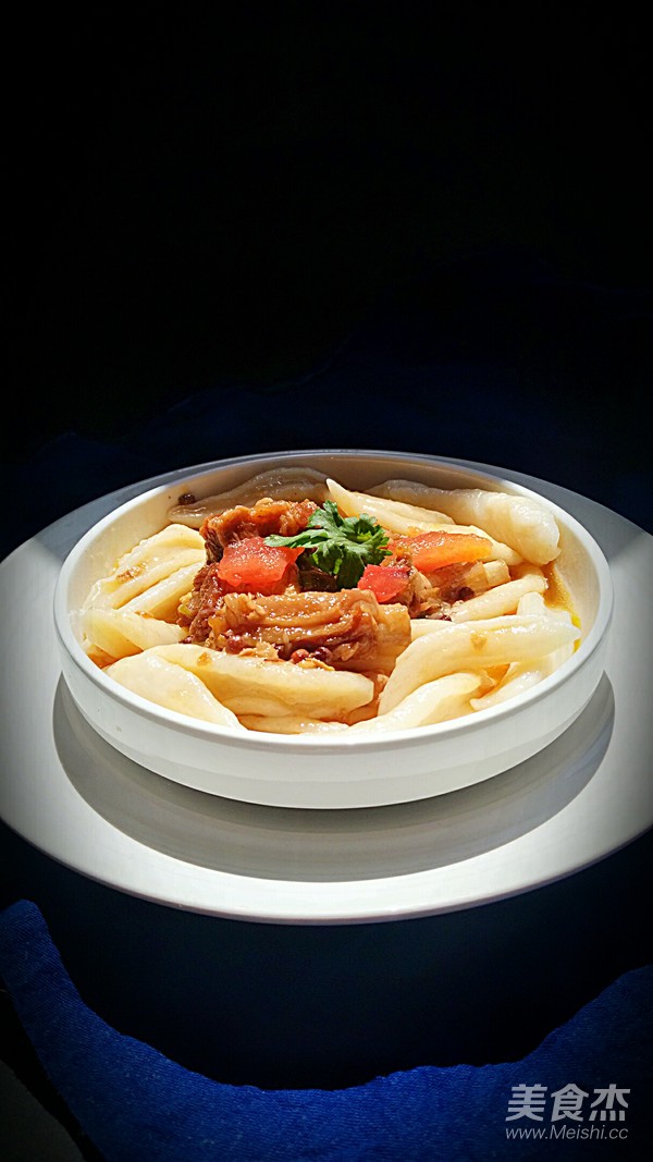 剪刀面團成較硬性的面團,多次醒面和餳面揉成較硬性的面團,在剪成剪刀面就可以了。\n剪刀面在羊排湯中寖泡一會口感更好。\n因為是山羊排所以用高壓鍋壓氣,熟的較透。