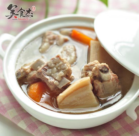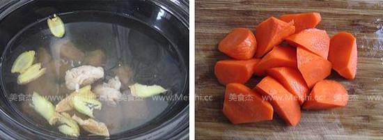 11.煲至排骨軟爛,加入蓮藕塊和胡蘿卜塊