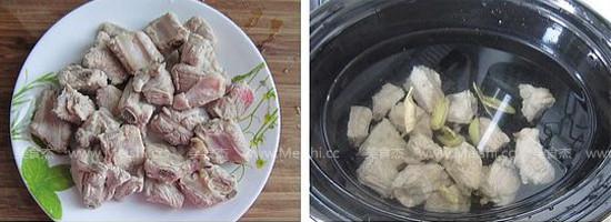 4.鍋內加入適量的水,下入焯好的排骨塊