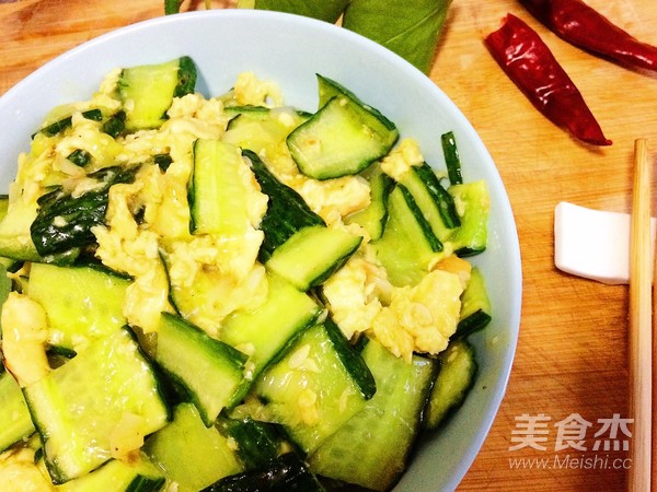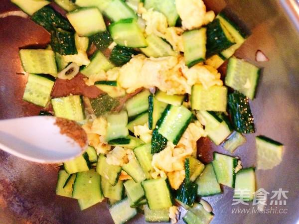 7.黃瓜稍微變色即可倒入雞蛋塊