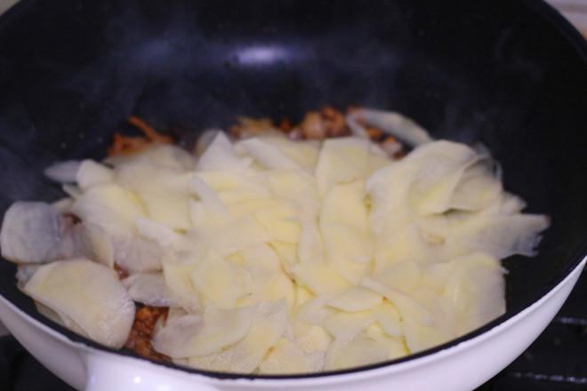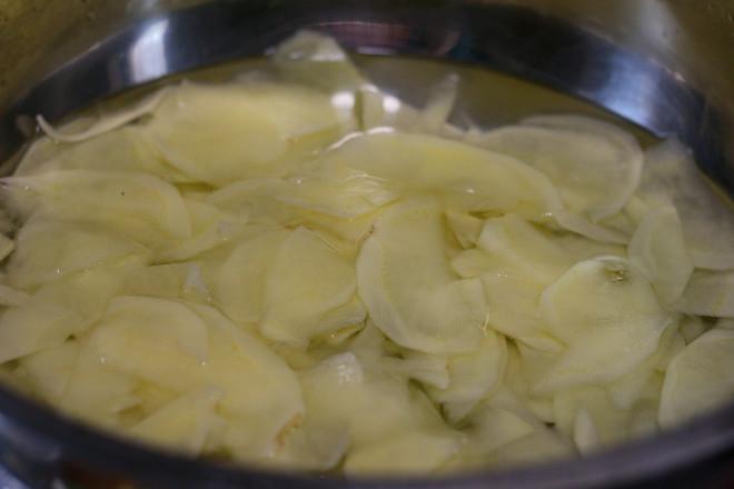 土豆去皮切薄片,泡水10分鐘,控干水分;