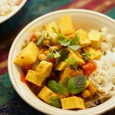 豆腐,土豆,西紅柿切1.5厘米方塊,洋蔥切小塊,姜大蒜切碎,菠菜切成5厘米長段