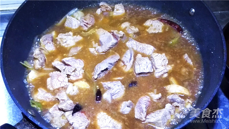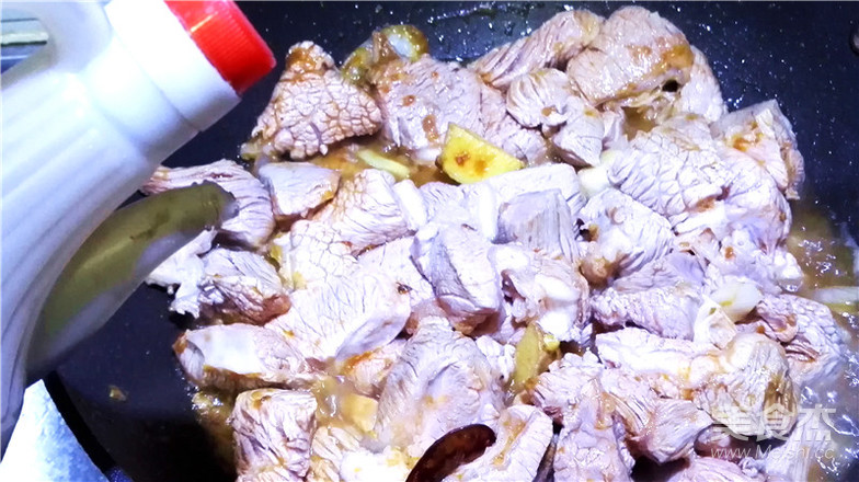 1.購買好的牛肉讓商家切好塊,回來放入鍋中;