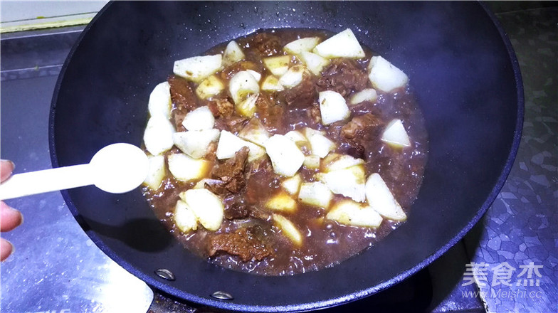21.放入適量鹽,中火燉制20分鐘,收至湯汁濃稠時即可出鍋;