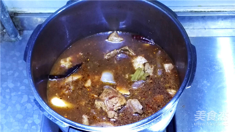 14.倒入高壓鍋中蓋上鍋蓋燜制40分鐘;