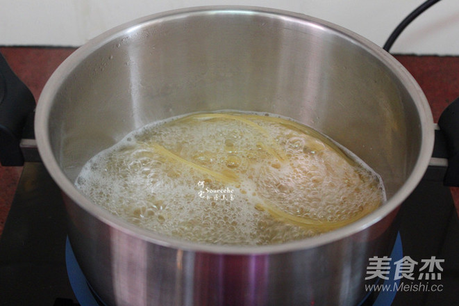 2.清水煮沸,放入意面煮熟;