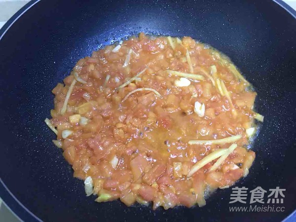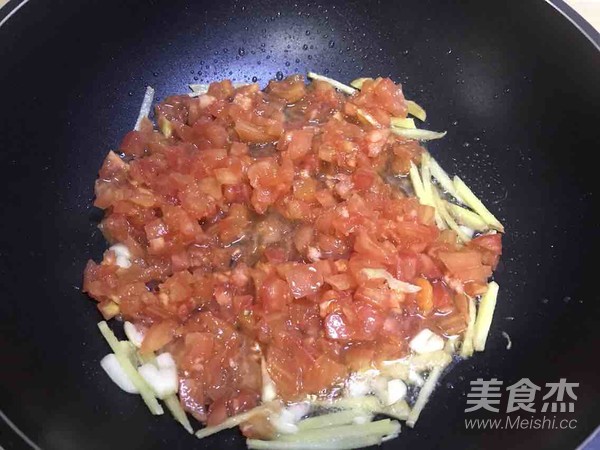 出香味后放入西紅柿丁翻炒出水