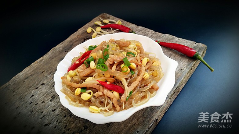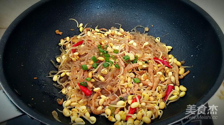粉條提前溫水泡軟,但不需要泡的很透,變軟就可以。\n黃豆芽需要蓋上鍋蓋悶燒一會才能熟透,不然吃了腸胃容易造成負擔。