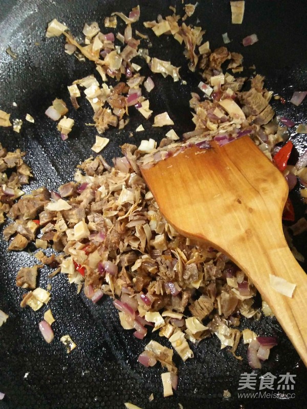 倒入筍干煸炒。